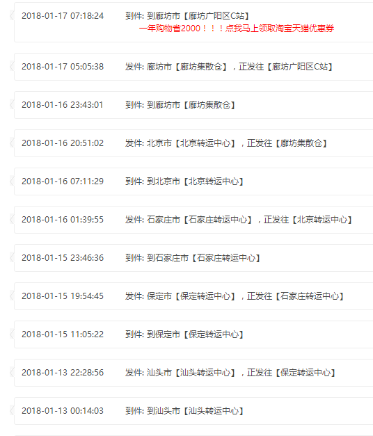 我的運單A005261693791已到長春四天了;怎么還沒見到