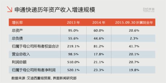 13申通快遞歷年資產(chǎn)收入增速規(guī)模