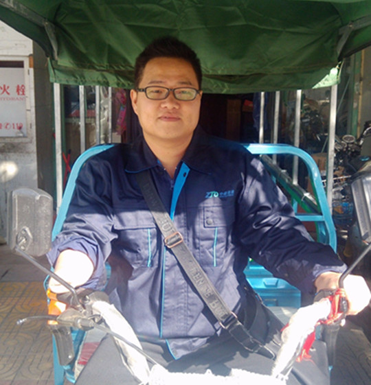 在操作場(chǎng)地打包區(qū)域,黃月斌僅用3分鐘將40-50個(gè)大小不一的快件整齊地放在袋子里。而快件全套操作流程,黃月斌只用了1個(gè)月就全部掌握。由于他積極上進(jìn),還考取了快遞員技能資格證書。然而有誰(shuí)知道,分揀、建包、派件等這些工作,普通人或許可以信手拈來(lái),但是黃月斌卻不行。4歲時(shí)因貪玩右臂被鞭炮炸傷截肢,只能靠左手勞作生活的黃月斌需要付出比健全人更多的努力。就拿建包來(lái)說,快件必須要整齊碼放在建包袋里,黃月斌單手裝件,必要時(shí)他就手腳并用,再不濟(jì)就用嘴咬住袋口。另外黃月斌送件的三輪車也是經(jīng)過他自己改裝,加油門的拉桿被他套上了一截水管,使他右臂截肢以上的部位可以套到水管中,從而完成加油門的動(dòng)作。“雖然失去了一直手臂,但是我還是對(duì)生活充滿信心?!?/span>