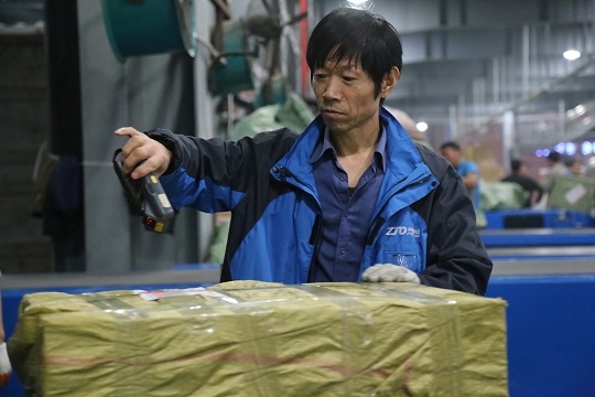 宋文成是北京轉(zhuǎn)運(yùn)中心的一名操作員,在中通工作已經(jīng)兩年了,對(duì)快遞分揀的各個(gè)流程、如何操作才能更省時(shí)省力都已拿捏準(zhǔn)確。今年“雙十一”期間,宋文成主要負(fù)責(zé)分揀大貨,從下午5點(diǎn)開始一直忙到第二天凌晨四點(diǎn)。“一晚上都在不停地分揀、拉貨,第二天只覺得胳膊酸疼抬不起來?!钡强吹酵聜兌歼@么努力,宋文成覺得即便再累也要與同事共進(jìn)退,對(duì)每一票快件負(fù)責(zé)。